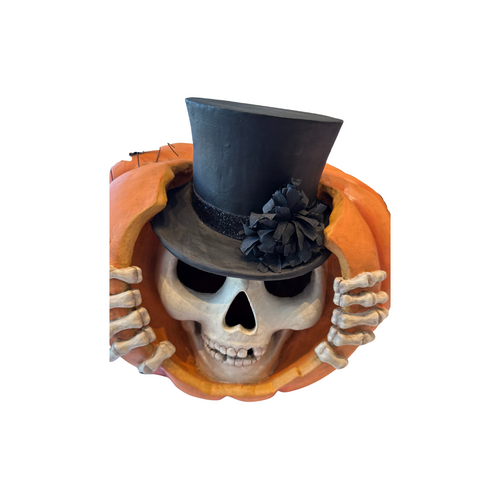 Pumpkin with Skeleton Head Paper Mache